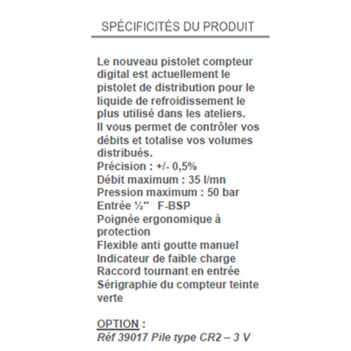 Le nouveau pistolet compteur digital est actuellement le pistolet de distribution pour le liquide de refroidissement le plus utilisé dans les ateliers.